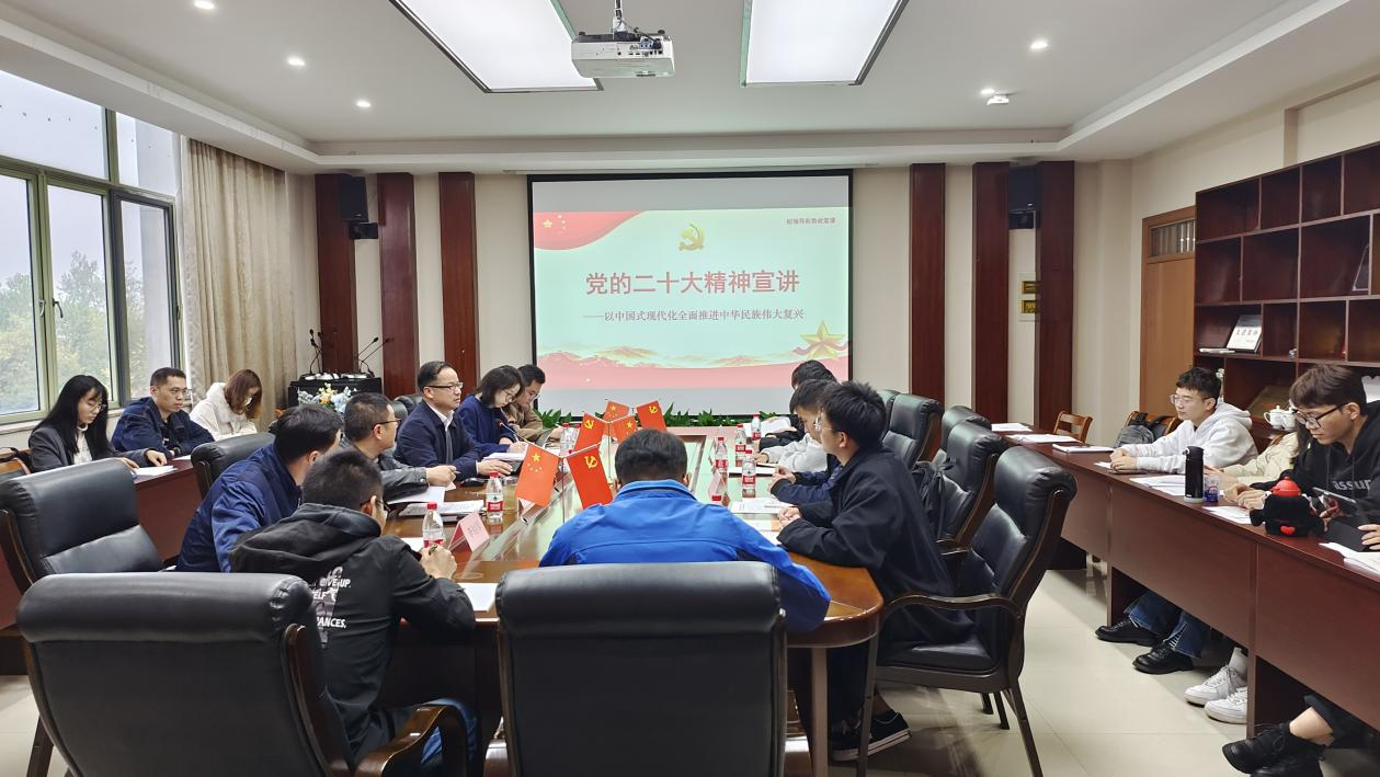 为深入学习党的二十大精神,全面贯彻习近平新时代中国特色社会主义思想,11月17日下午,校党委委员、组织部、宣传部、统战部部长楼胆群在6号楼402会议室为数科研究生第一党支部全体党员进行二十大精神专题党课。本次党课由党委书记段雪辉主持,数科学院组织员李钊军、研究生辅导员陈巍嘉和数科学院研究生第一党支部全体党员出席。