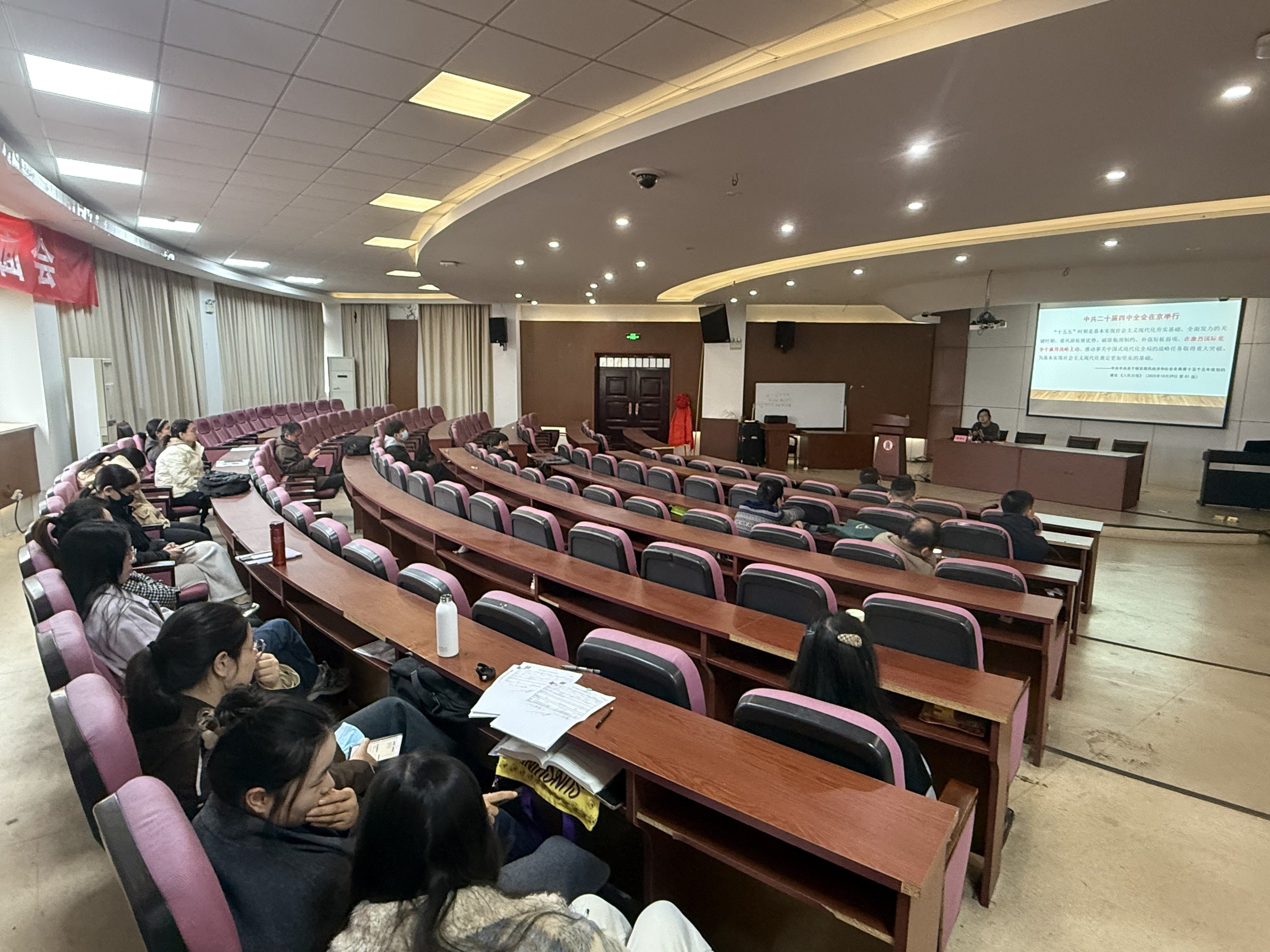 为推动二十届四中全会精神落地落实、见行见效,2025年12月2日下午,数据科学学院举办了以“学习贯彻二十届四中全会精神”为主题的“数科讲坛”第7期专题讲座,引导全院教职工领会全会核心要义,切实把思想和行动统一到全会部署上来。本次讲座特别邀请马克思主义学院邢雁欣老师担任主讲人,学院全体教职工参与学习。