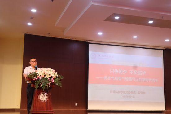 党委书记段雪辉为2022级500余名新生讲授了一堂别开生面的“新生入党第一课”,分享交流了如何树立和追求自己的理想,并成为一名做志气高、骨气硬、底气足的新时代青年。