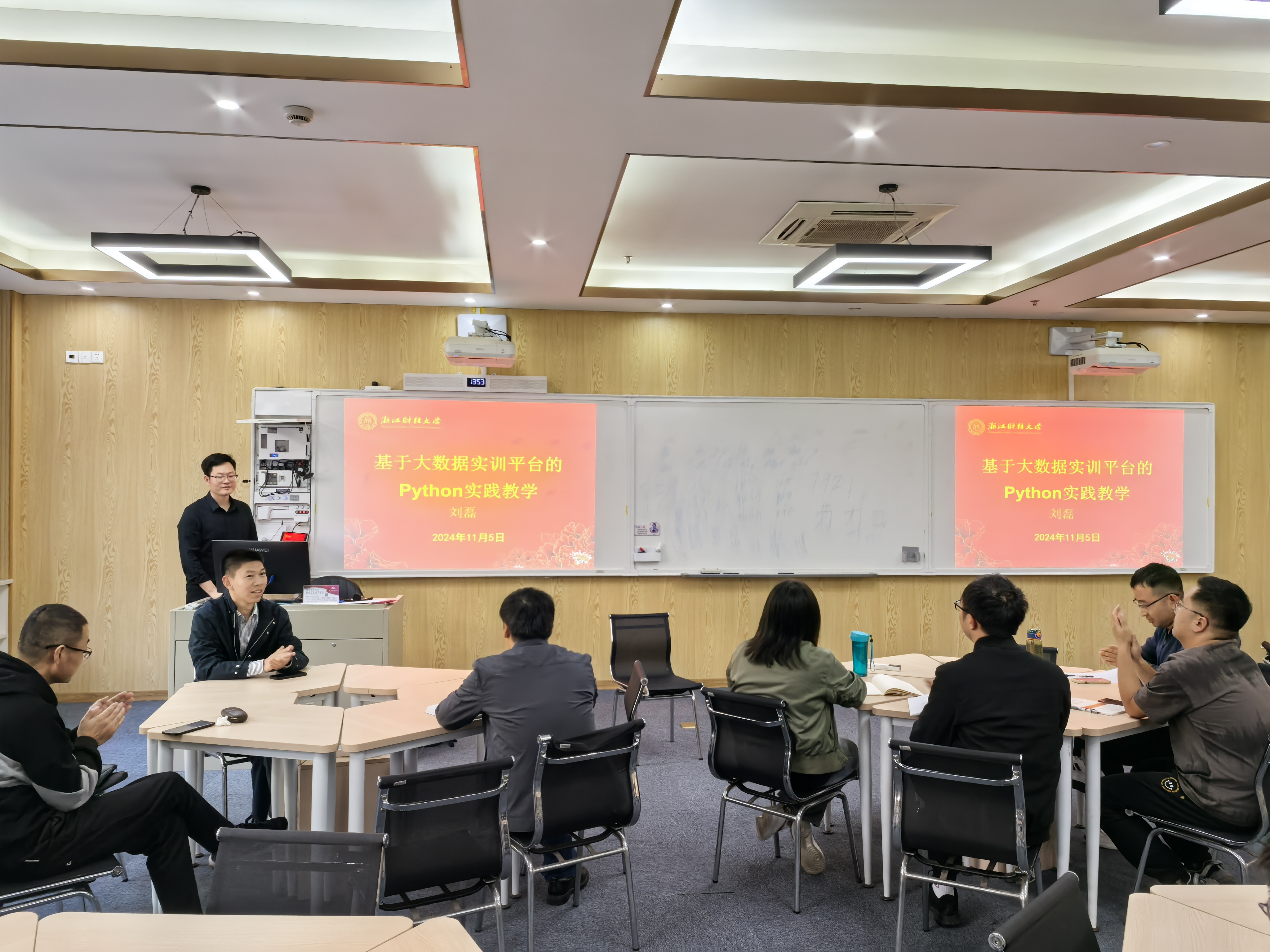 于11月5日下午成功举办了研究生教育质量月——2024-2025学年研究生教学教研活动。此次活动荣幸地邀请到研究生导师刘磊为大家带来一场精彩的示范课程——“基于大数据实训平台的Python实践教学”。