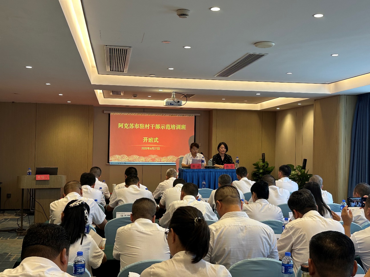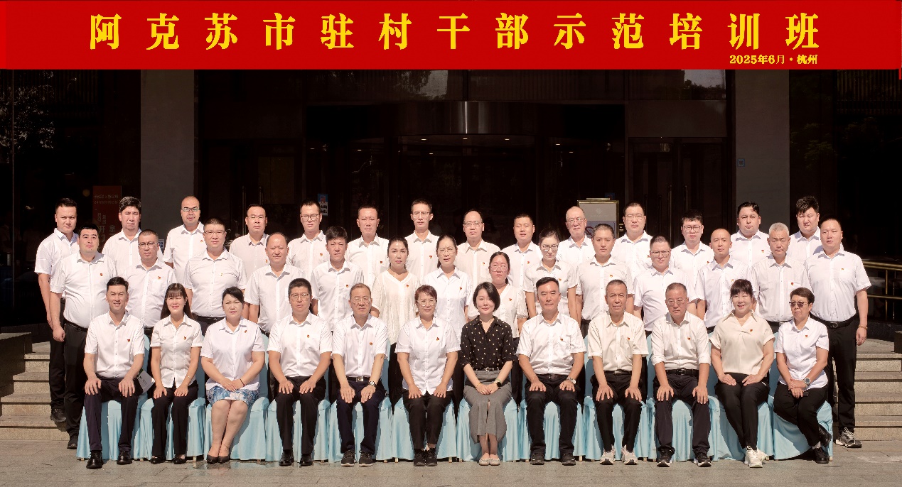 2025年6月26日—7月3日,由阿克苏市委组织部主办,浙江财经大学数据科学学院承办的阿克苏市驻村干部示范培训班在杭州成功举办。阿克苏市驻村干部40人参加培训并顺利结业。阿克苏市人大常委会办公室主任、一级主任科员张云做开班动员讲话,浙江财经大学文华管委会党支部书记、文华管委会办公室主任孙莹向培训班学员致开班辞。
