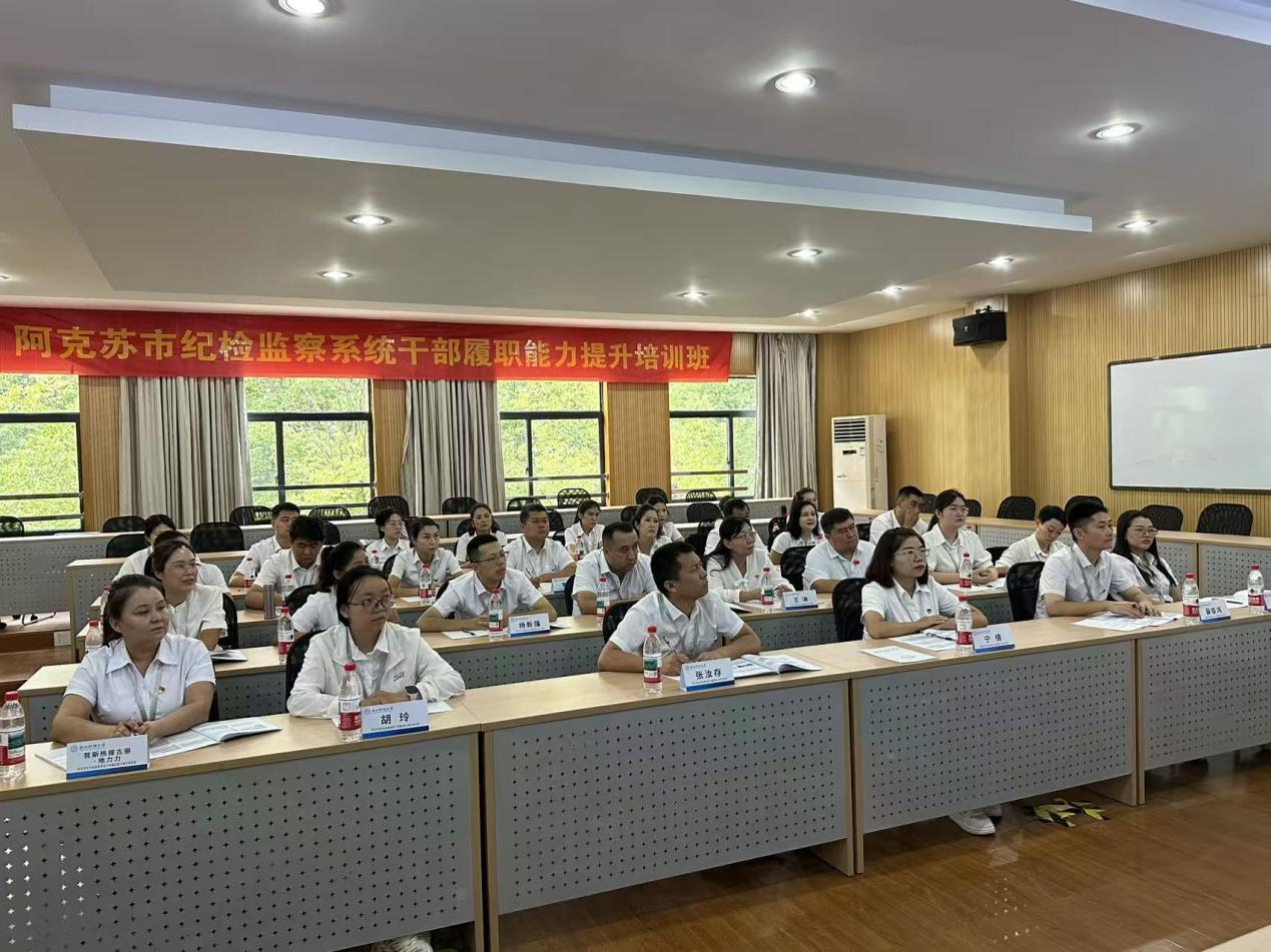 2025年9月19日—26日,由阿克苏市委组织部主办,浙江财经大学数据科学学院承办的阿克苏市纪检监察系统干部履职能力提升培训班在文华校区成功举办。阿克苏市纪检监察系统干部30人参加。阿克苏市纪委常委、监委委员宁倩作开班动员,浙江财经大学数据科学学院党委书记段雪辉代表学校致辞。